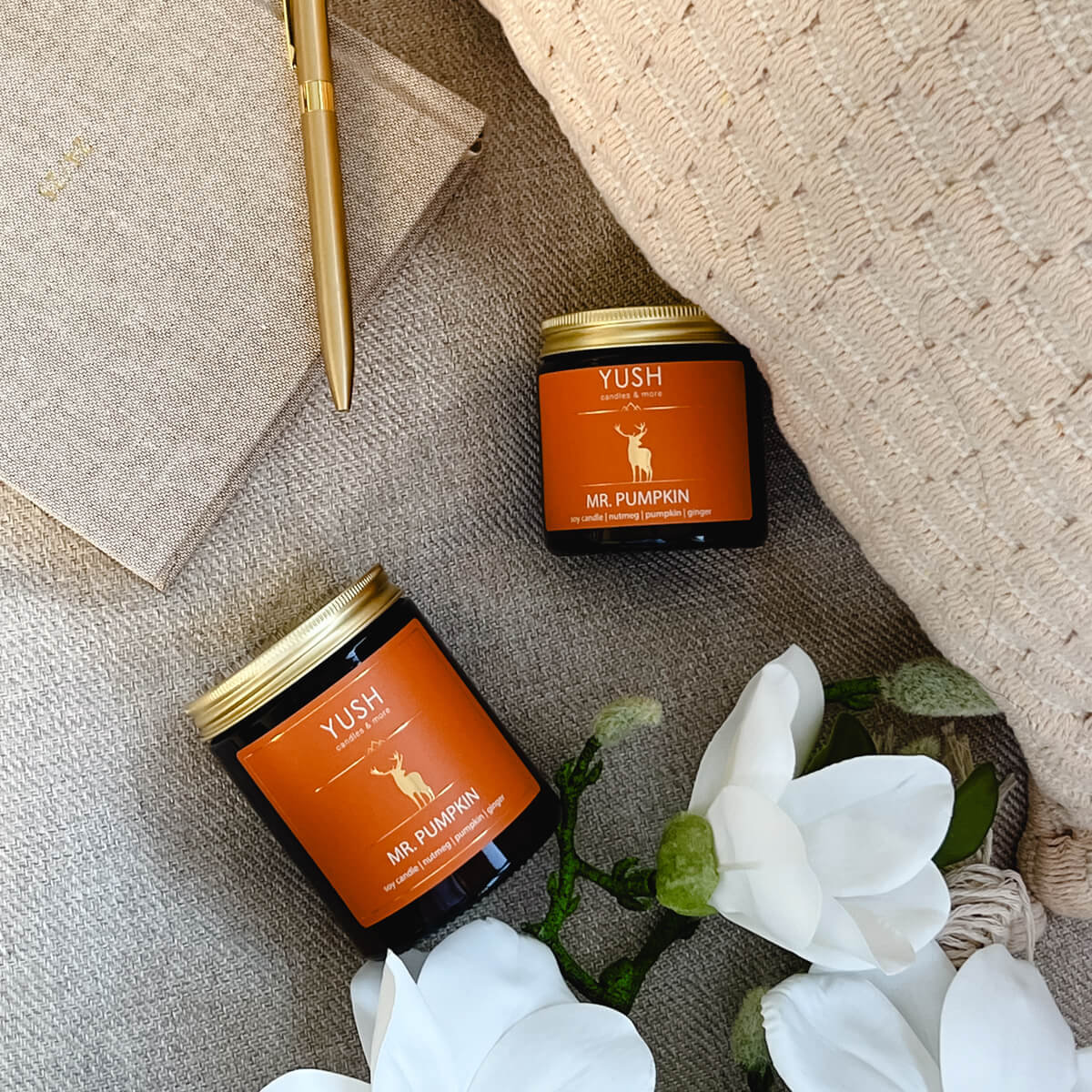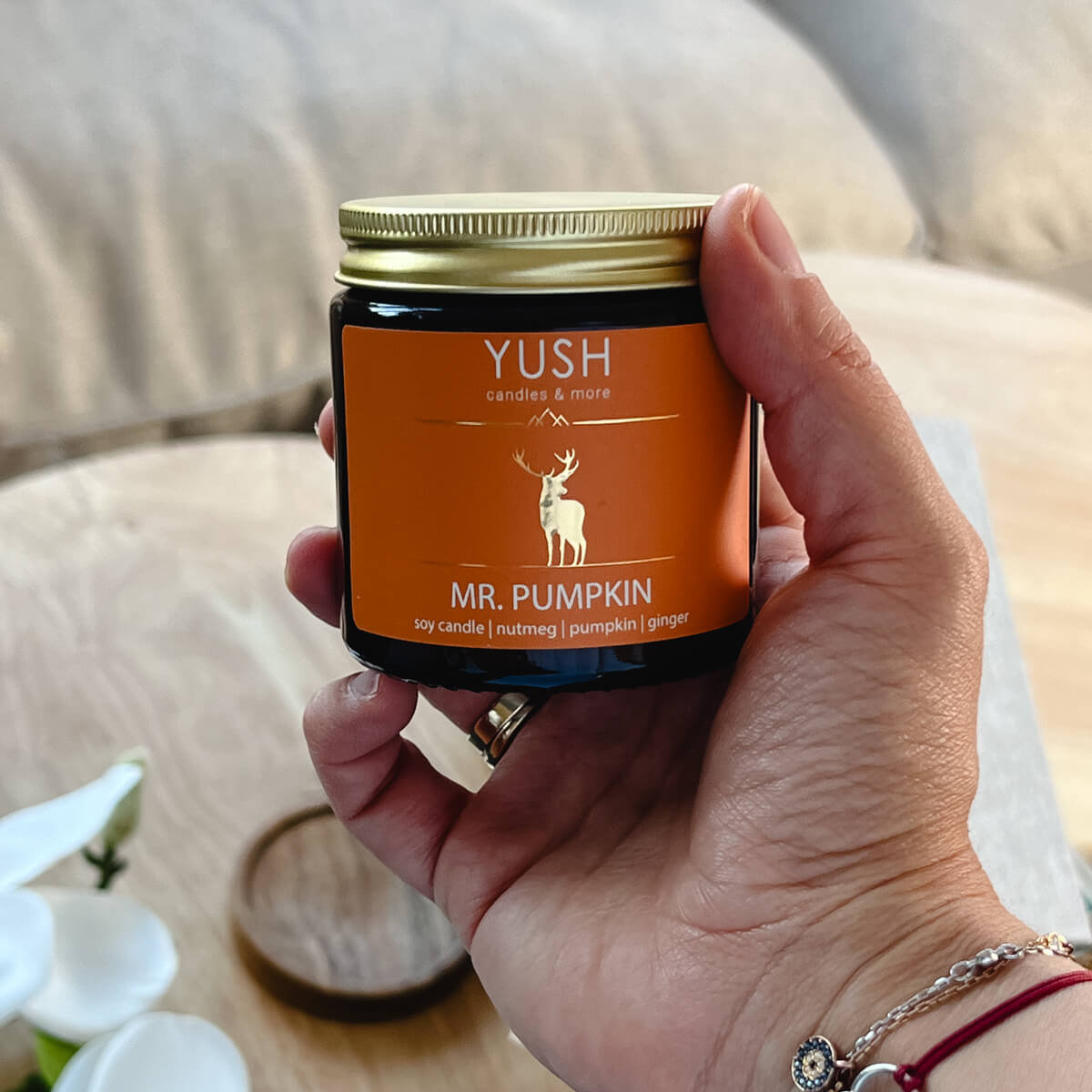 Mr. Pumpkin – Dyniowa Świeca Sojowa YUSH - świece sojoweWosk sojowy 100% naturalny i ekologicznyCzas palenia: ok. 25 godzinPojemność: 120mlNuty zapachowe: Słodka ...