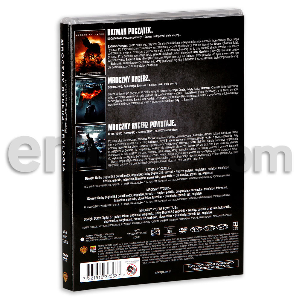 Spektakularna Trylogia Christophera Nolana! "Batman Początek", "Mroczny Rycerz" i "Mroczny Rycerz powstaje". Trzy największe hity kinowe o przygodach Batmana. Doskonały scenariusz, niesamowite efekty
