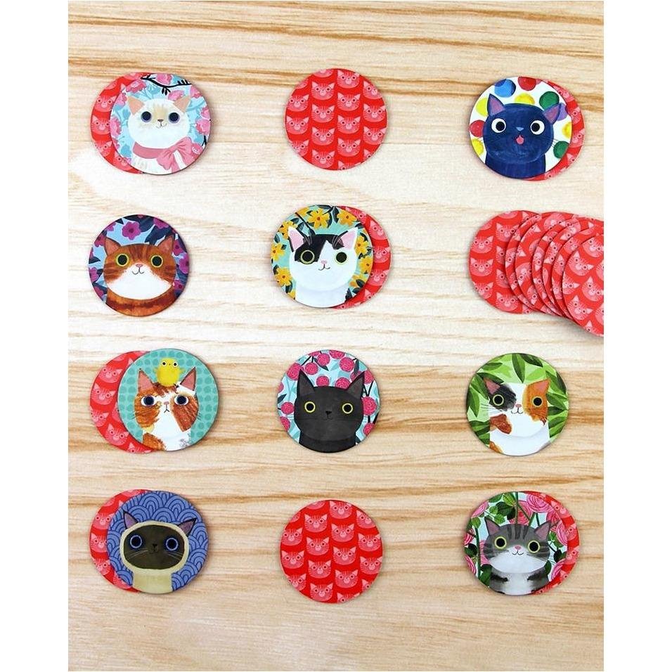 Gra Mini Memory Koty amerykańskiej marki MUDPUPPY składa się 12 par okrągłych kart, które należy skompletować. Parę tworzą dwie identyczne ilustracje. Karty mają przyjemne dla oka kolory i przedstawiają urocze koty. Autorką ilustracji jest miłośniczka kotów i normandzka artystka Angie Rozelaar. Karty zostały wykonane z solidnego kartonu, pochodzącego z recyklingu.