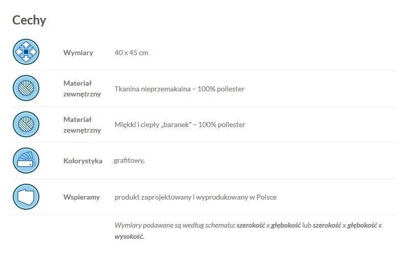 - siedem kolorów do wyboru: czarny, grafitowy, szary, granatowy, cappuccino, czerwony, niebieski
