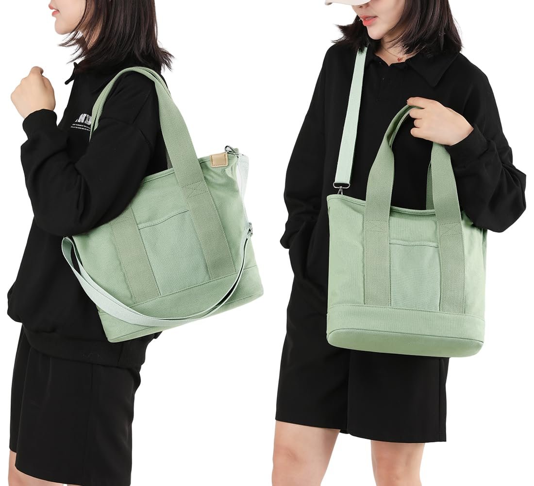 【Comfortable Canvas Purses】: made of thick and durable high-density canvas for durability and comfort in the hand, machine washable and hand washable,removable wide shoulder straps for shoulder comfort, compact and large internal capacity for long hours of carry