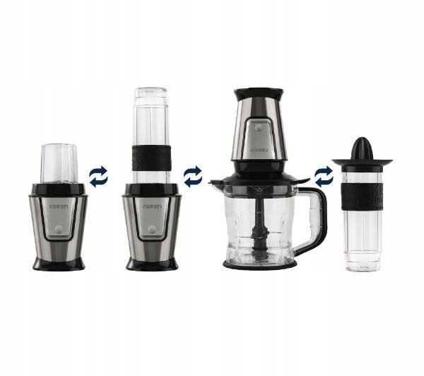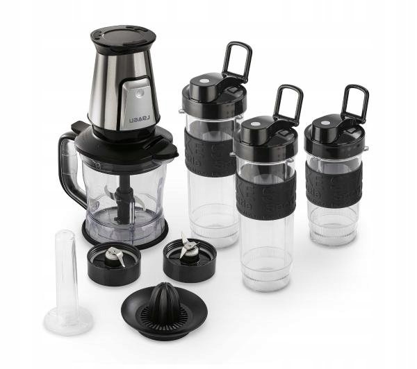 - Wyposażenie: 3 bidony, 3 zakrętki z korkiem, pojemnik młynka, rozdrabniacz, wkład chłodzący, wyciskarka do cytrusów