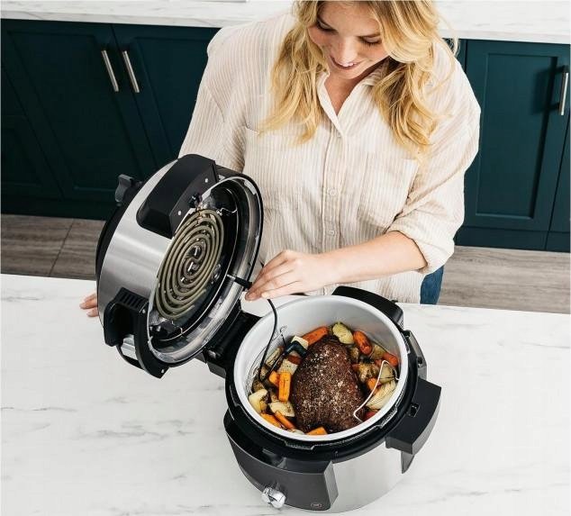 Ninja Foodi SmartLid to urządzenie, które zaskakuje szerokim wachlarzem możliwości przygotowywania posiłków. Wyposażony w czternaście programów gotowania i trzy specjalne tryby – ciśnieniowe, smażenie na gorącym powietrzu oraz połączenie funkcji na parze – umożliwia szybkie i wygodne przygotowanie zarówno dań słonych, jak i słodkich, dla nawet sześciu osób jednocześnie.