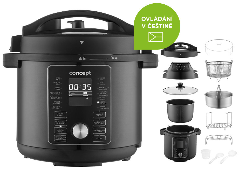 Wielofunkcyjny szybkowar z pokrywką Air Fry Concept CK8000 COOKERY 11 w 1 3 pokrywy Akcesoria 11 urządzeń w jednym garnku Odkryj rewolucję w gotowaniu dzięki wielofunkcyjnemu szybkowarowi z ...
