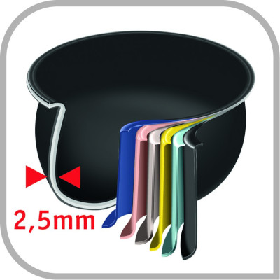 Trwała miska sferyczna, grubość 2,5 mm z 6 warstwami, w tym trwała i odporna powłoka nieprzywierająca.