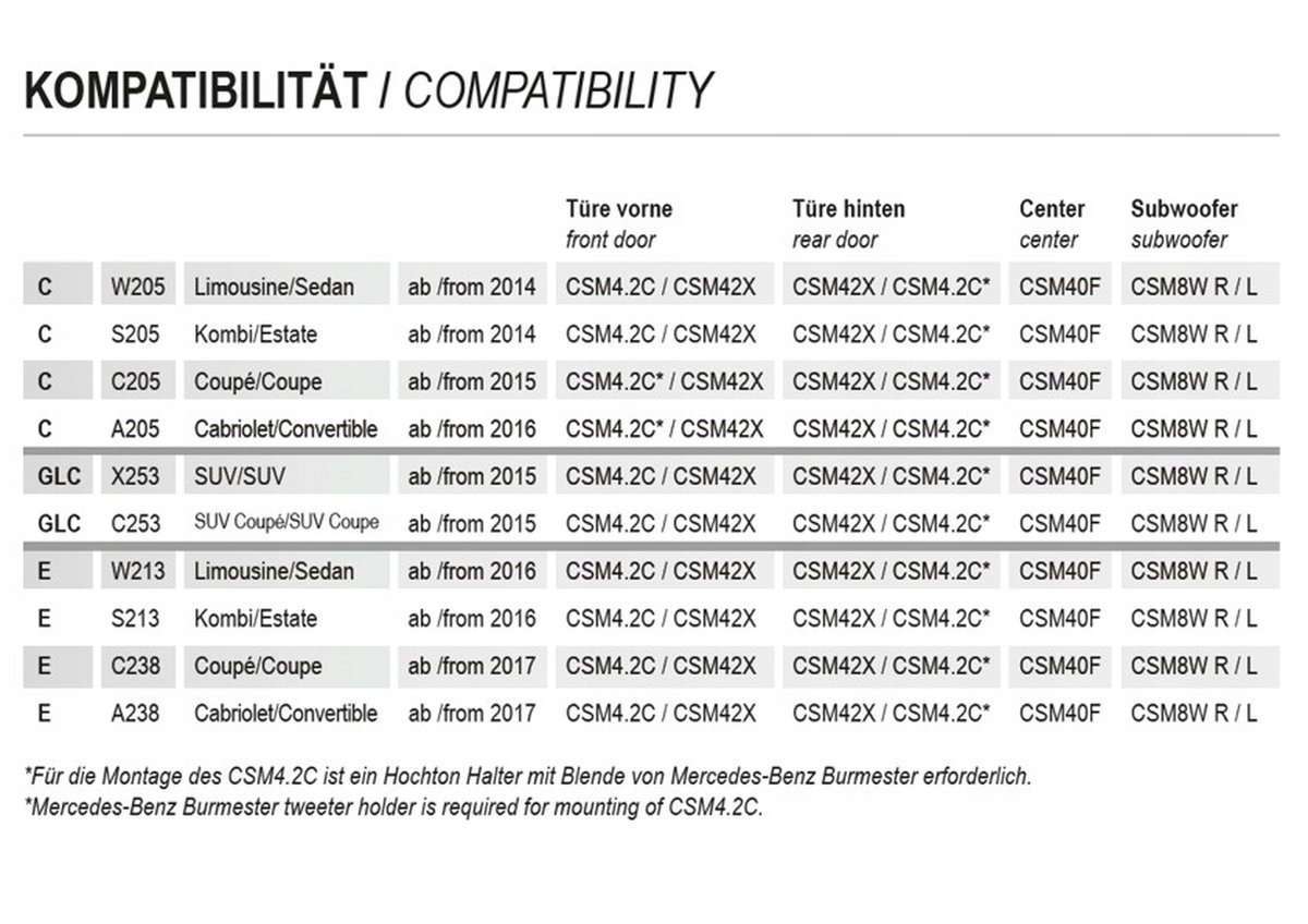 model: CSM4.2C - 2-drożne głośniki odseparowane Mercedes Klasy C / GLC / E