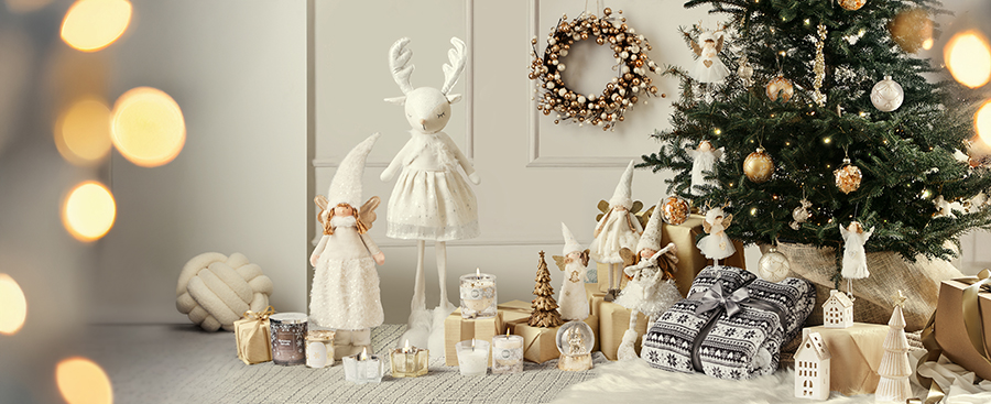 Kolekcja Magic Winter to wyjątkowa propozycja, w której subtelna biel przeplata się ze złotymi i srebrnymi akcentami, tworząc harmonijną, zimową atmosferę. Ciepłe, miękkie koce i pachnące świece sprawiają, że przestrzeń staje się przytulna, a każdy kąt domu zyskuje świąteczny, niepowtarzalny urok.