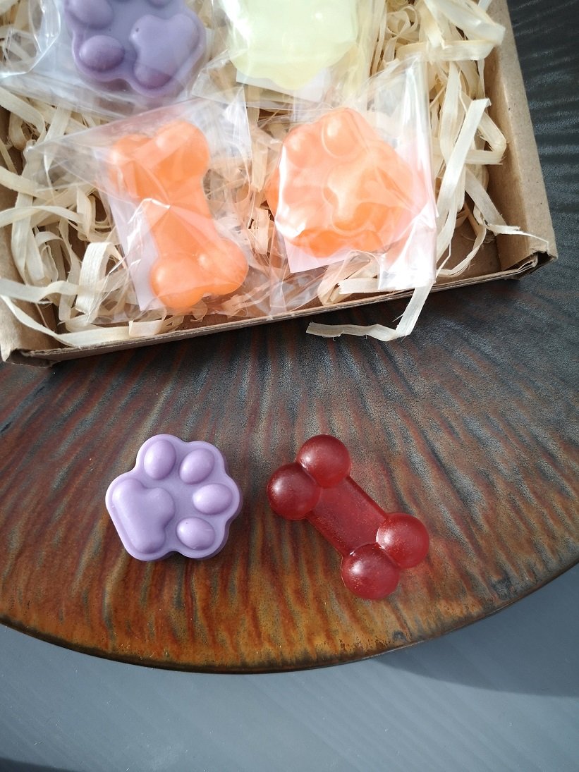 pachnące mydełko glicerynowe w uroczym kształcie odcisku łapki lub kości