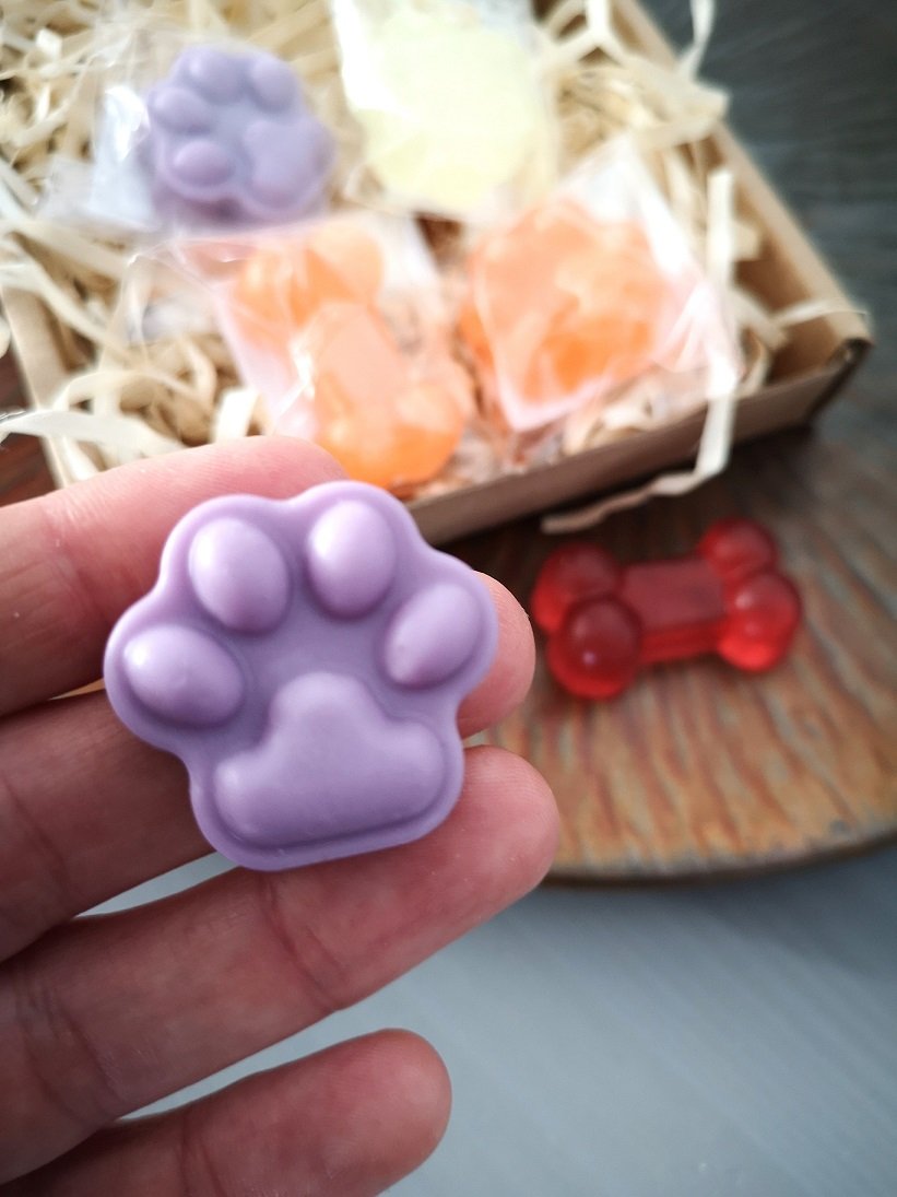 Mydełko glicerynowe dla miłośników psów i kotów w kształcie odcisku uroczej łapki lub kości