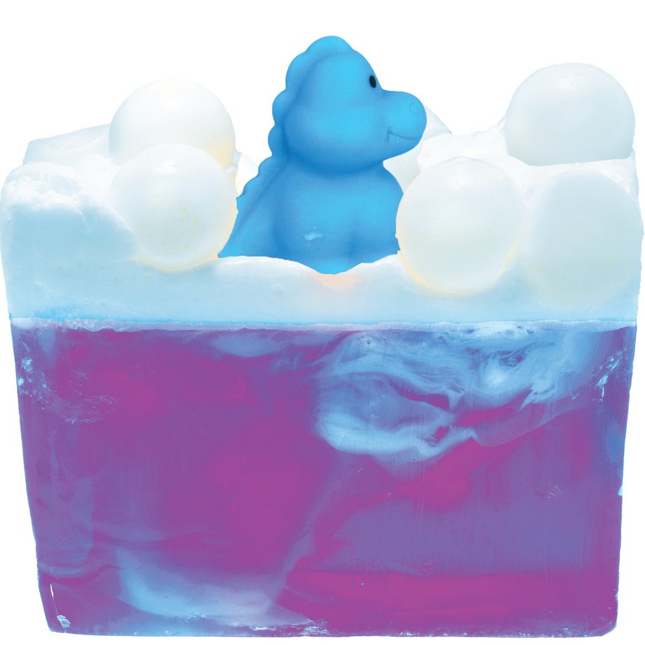 Mydło glicerynowe Soap-a-Saurus z zabawką Bomb Cosmetics. Zapomnij o dniu i wróć do prostszych czasów dzięki temu wspaniałemu mydłu zawierającemu czyste olejki bergamotki i eukaliptusa.