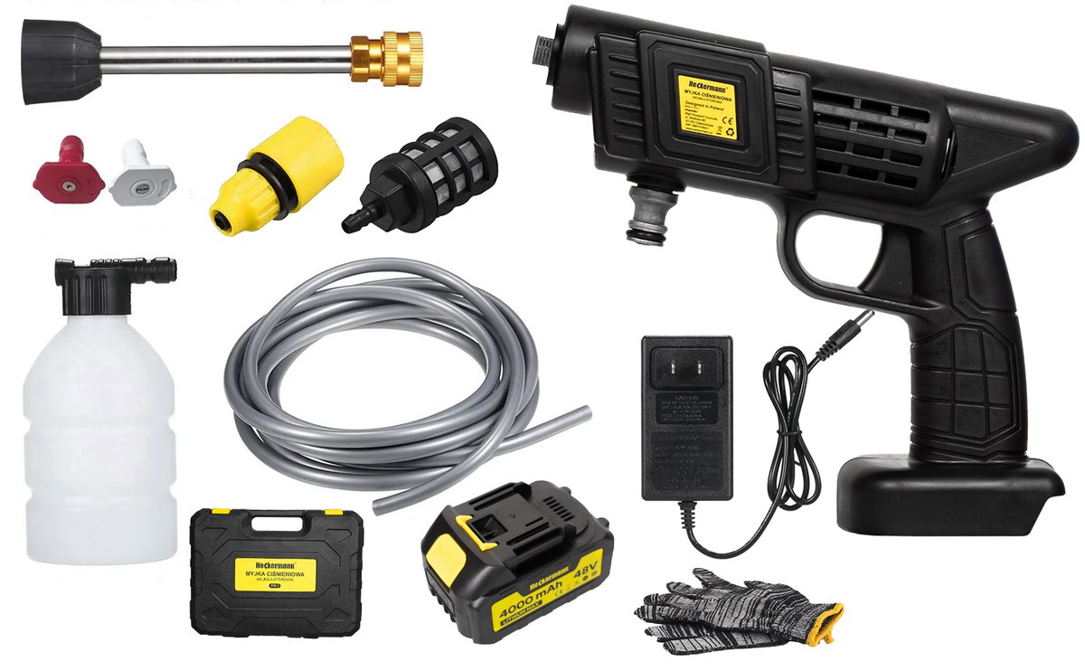 Myjka Ciśnieniowa Akumulatorowa Ogrodowa - Zestaw do Mycia Okien i Kostki marki Heckermann SPECYFIKACJA TECHNICZNA : Ciśnienie robocze: 30 bar Maksymalna temperatura wody: 40° ...