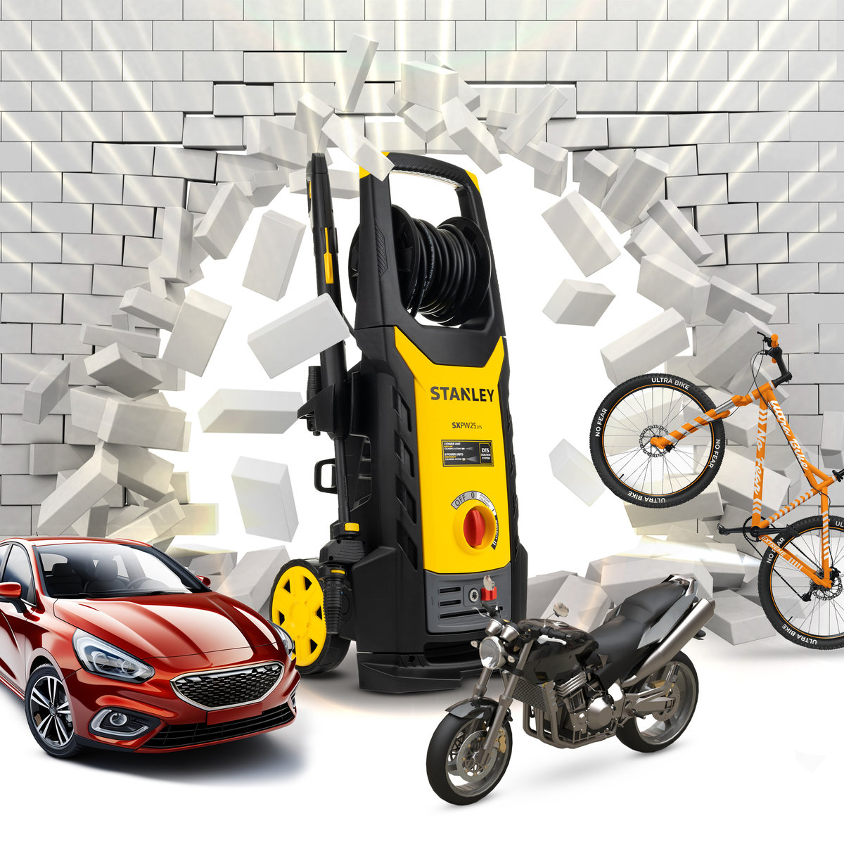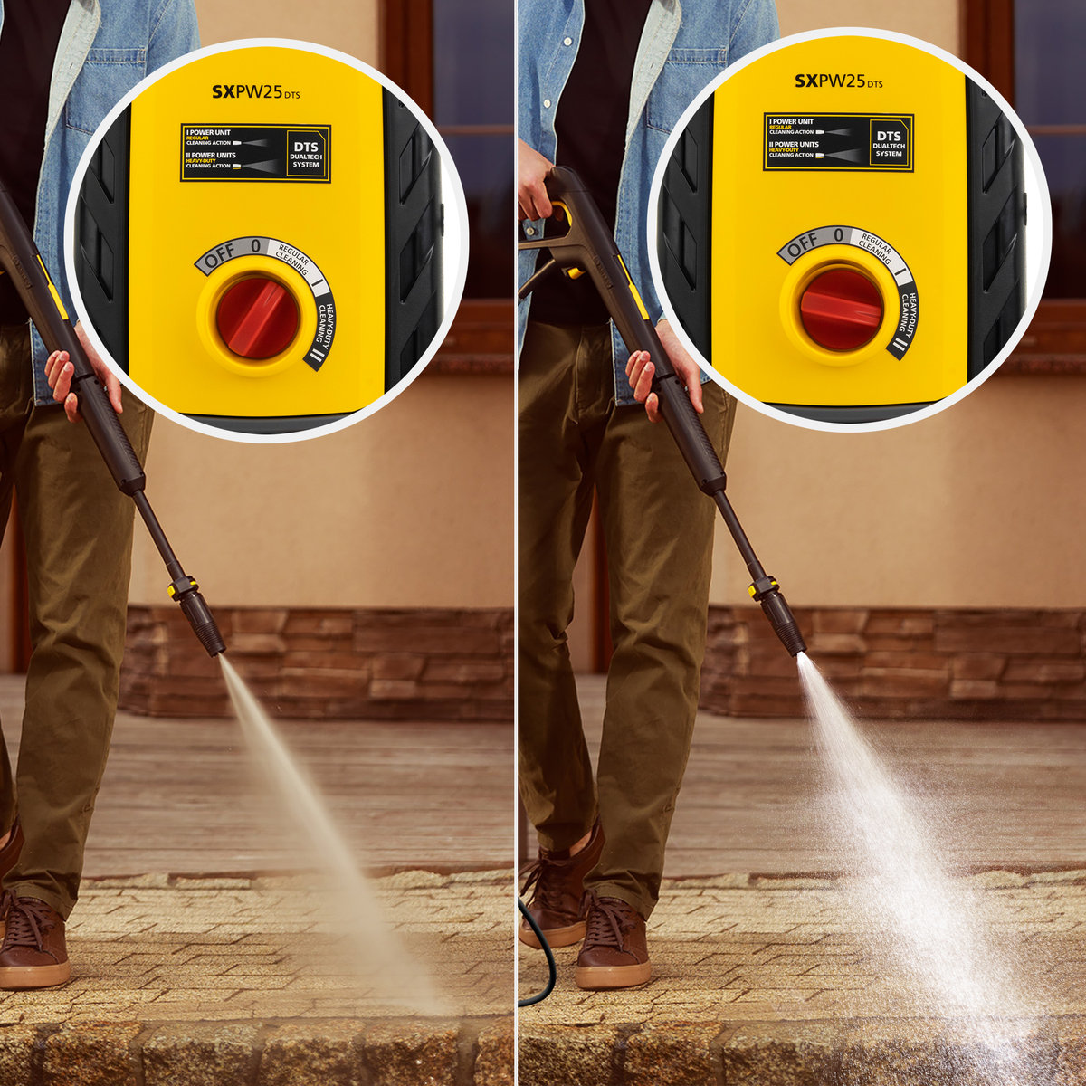 Mamy na to rozwiązanie! Myjka ciśnieniowa Stanley o mocy 2500W i ciśnieniu maksymalnym 300 bar z techonolgią Dualtech! Dzięki imponującej sile łatwo usuwa nawet uporczywe zabrudzenia. Najnowszy model wyróżniają dwa zespoły pompowo-silnikowe i unikatowy przełącznik trybu pracy.
