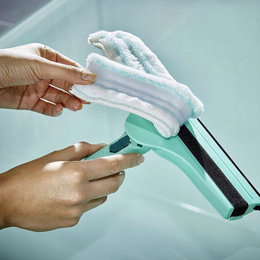 Do małych okien w łazience lub okien z kratownicą: ręczna myjka do szyb 3 w 1 marki Leifheit dzięki szerokości zaledwie 20 cm umyje każdą szybę, wykonując trzy czynności jednocześnie: myje szyby, ramy i w narożnikach, ściąga wodę. Jest to możliwe dzięki wyjątkowej nakładce z mikrowłókien, która jednocześnie myje boczne ramy okien oszczędzając niesamowicie dużo czasu i sił. Po umyciu resztki wody zbierzesz gumową ściągaczką, a szyby będą błyszczeć bez smug. Obrotowy przegub zapewnia większą zwrotność myjki i maksymalną wygodę w użyciu. Dzięki temu idealnie nadaje się do skutecznego mycia i ściągania wody zygzakiem, tak jak robią to zawodowcy.