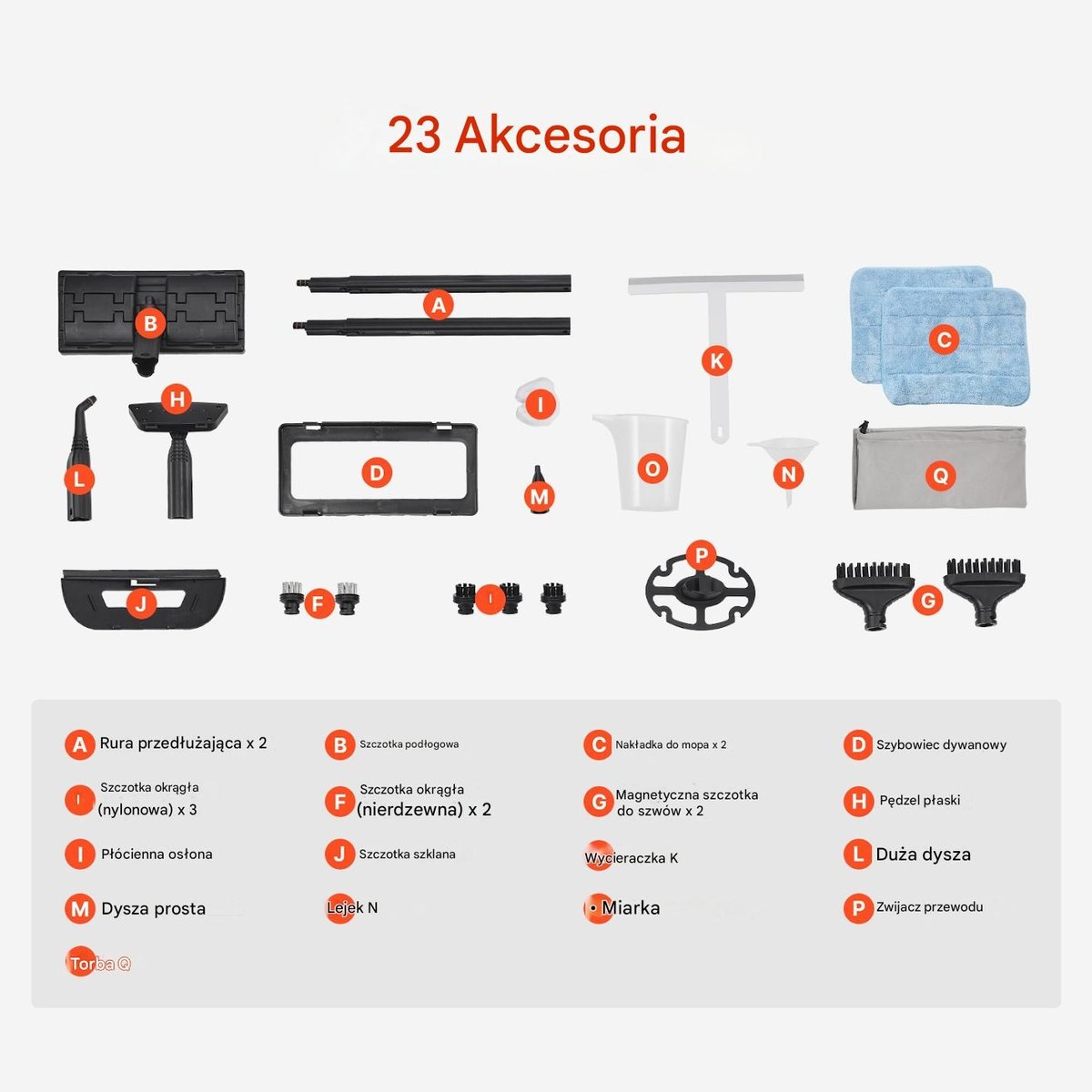 ➡️ Bogaty zestaw 23 akcesoriów – idealne narzędzie do kompleksowego sprzątania.