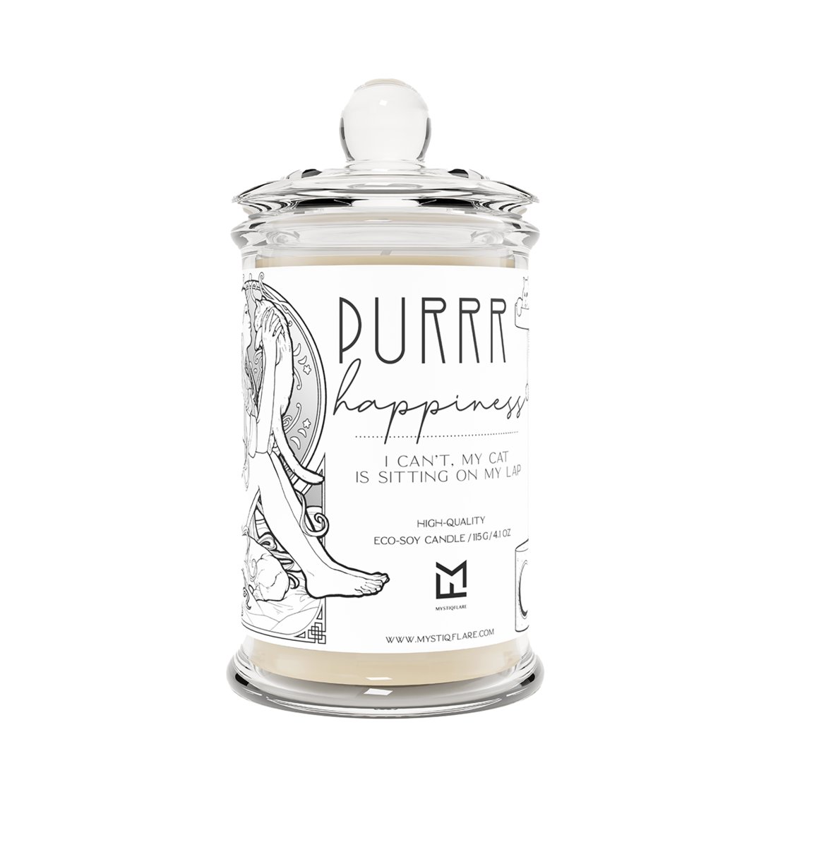 Mystiq Flare – PURRRR HAPPINESS – I can’t, my cat is sitting on my lap | Naturalna świeca sojowa z ilustracją secesyjną