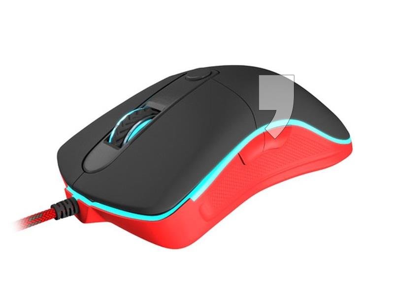 optyczny sensor posiada 6 przycisków oraz rolkę wbudowane podświetlenie RGB gumowana powłoka przełącznik DPI wbudowana pamięć