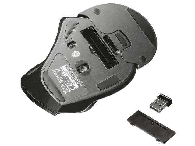 Chcesz korzystać z myszy Trust Vergo Comfort? Po prostu podłącz odbiornik micro USB do portu USB i zacznij jej używać. Odbiornik umożliwia bezprzewodową pracę myszy Vergo w zasięgu 10 metrów. Po zakończeniu korzystania z niego można łatwo zapisać odbiornik w produkcie lub po prostu zostawić odbiornik w laptopie / komputerze.