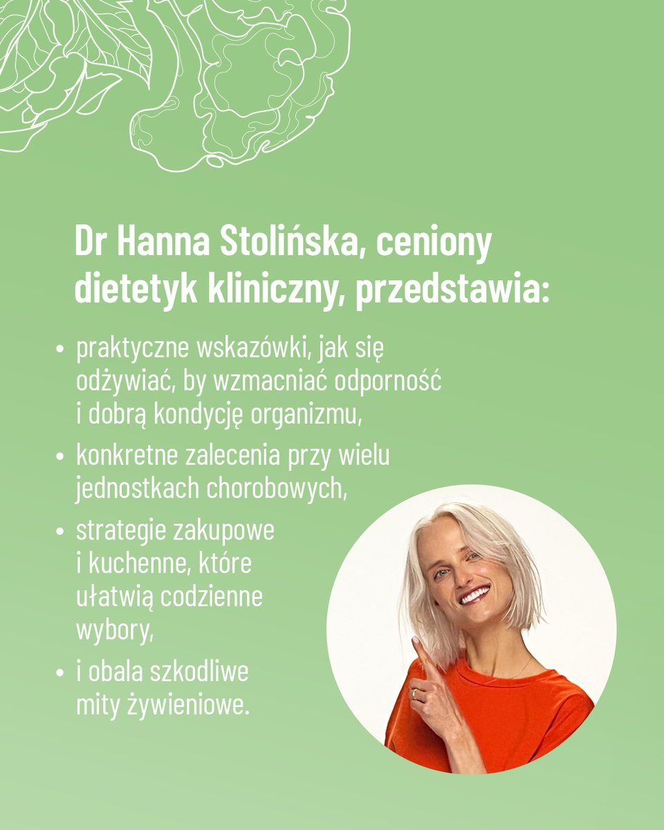 Masz dość cudownych diet, modnych suplementów i złotych rad z internetu? Postaw na rzetelną wiedzę i jedzenie, które naprawdę leczy. Ta książka zmieni Twoje podejście do zdrowia – nie przez restrykcje i wyrzeczenia, lecz przez świadome, codzienne wybory. Dr Hanna Stolińska, ceniony dietetyk kliniczny, udowadnia, że najskuteczniejszy suplement to dobre jedzenie i możesz po niego sięgnąć w każdej chwili. Wystarczy tylko świadomie wybrać to, co jest dla nas dobre.