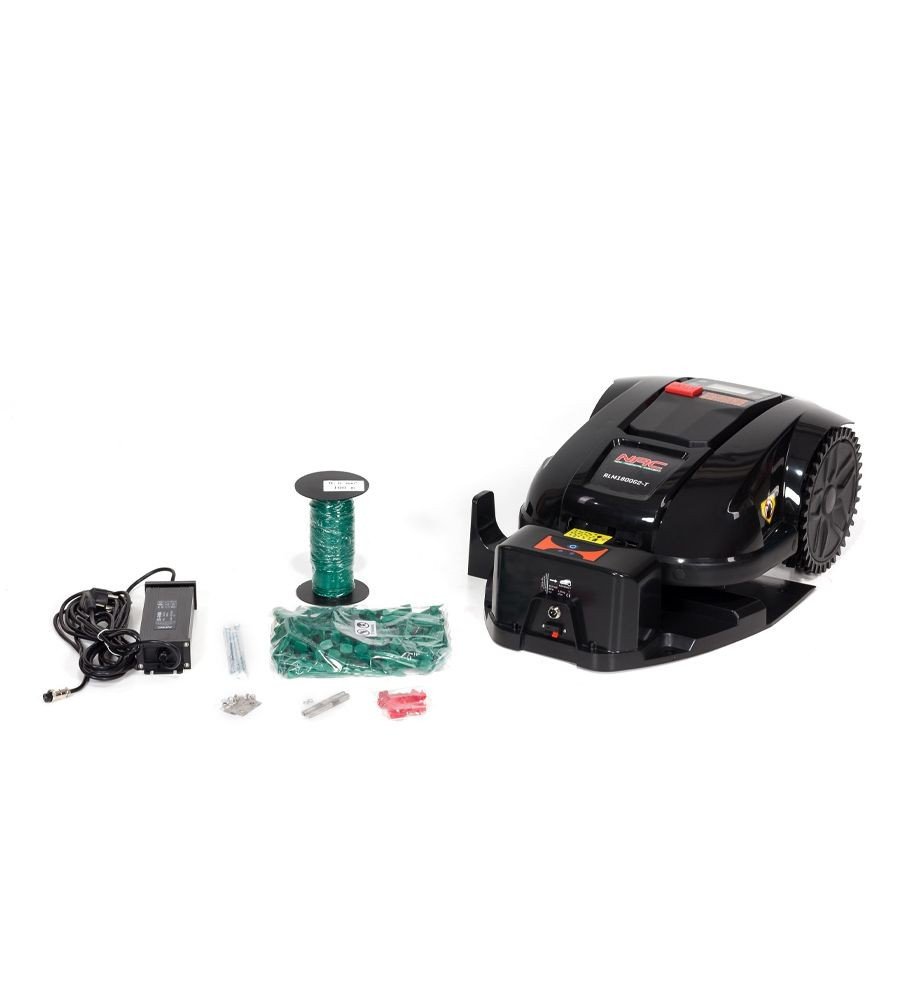 | Wyposażenie: | robot do koszenia trawy, stacja dokująca + 2 elektrody wraz z kluczem do ich przykręcenia, ładowarka baterii akumulatorowej, śruby (kołki) do mocowania stacji dokującej (4 szt.), linka do oznaczenia obszaru roboczego 100 m b., oraz paliki do jej mocowania (100 szt.) |
