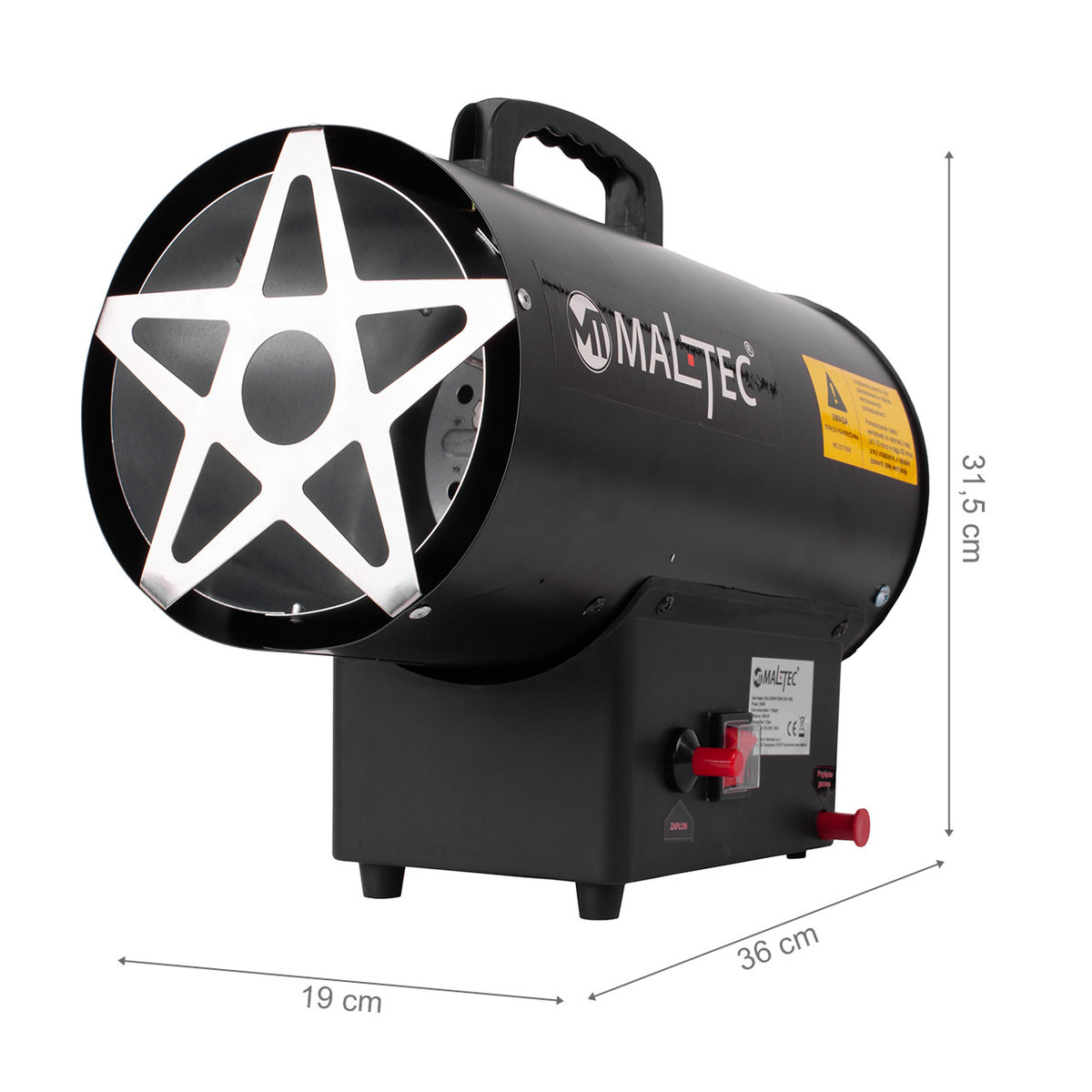 Urządzenie zasilane gazem propan-butan wytwarza czyste i ciepłe powietrze umożliwiając nagrzanie bardzo dużych powierzchni.