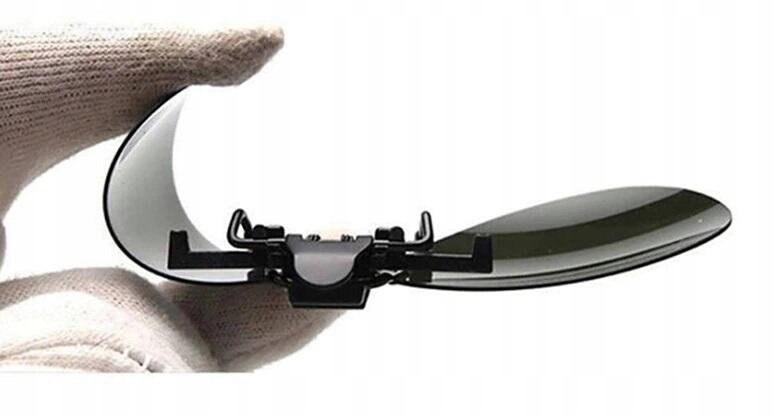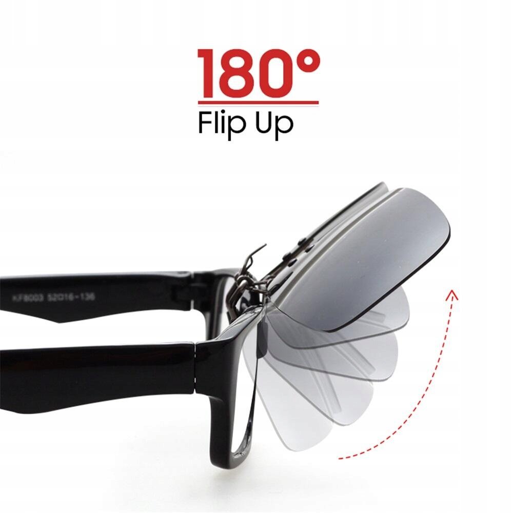 ✔️Nakładki posiadają uchwyt (klips), który umożliwia założenie ich na okulary (idealnie komponują się z okularami typu clubmaster, ale pasują też na wiele innych modeli). Dzięki niemu nakładkę można odchylić bez konieczności jej odpinania.