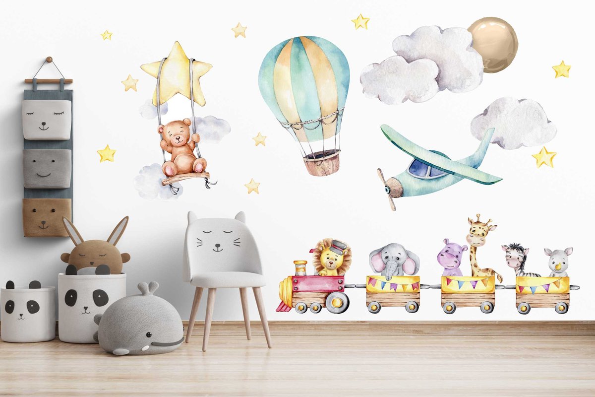 Naklejka ścienna do pokoju dziecięcego z modnym motywem w pastelowych kolorach. Taka dekoracja to świetny pomysł na ozdobienie pokoju dla dziecka, z pewnością wywoła promienny uśmiech na twarzy ...