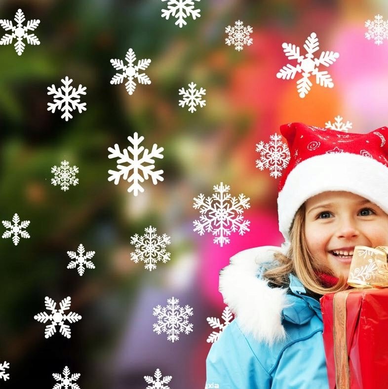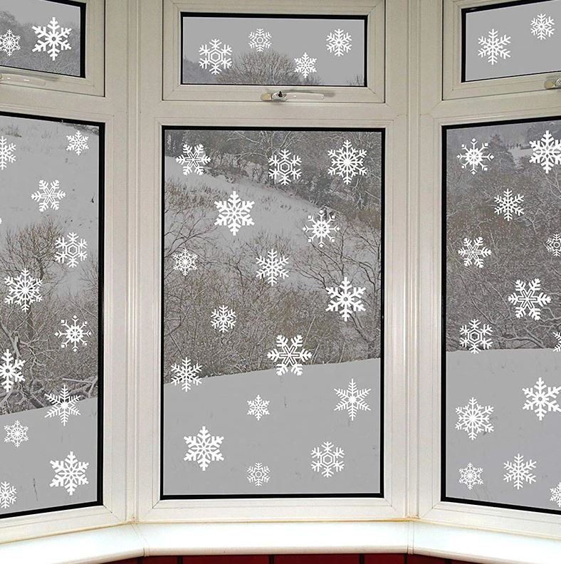 Zestaw naklejek imitujących płatki śniegu to świetny pomysł na przyozdobienie szyb w oknach w oczekiwaniu na Boże Narodzenie: