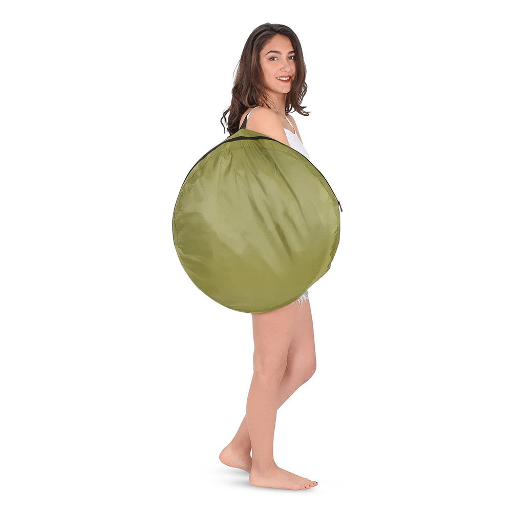Przenośny namiot idealny podczas kempingu lub na plaży, zapewniający prywatność i komfort. Chroni skutecznie przed słońcem, wiatrem oraz ciekawskimi spojrzeniami. Dzięki lekkiej konstrukcji jest łatwy do transportu i przechowywania, a jego szybki system otwierania i zamykania sprawia, że korzystanie jest bardzo wygodne.