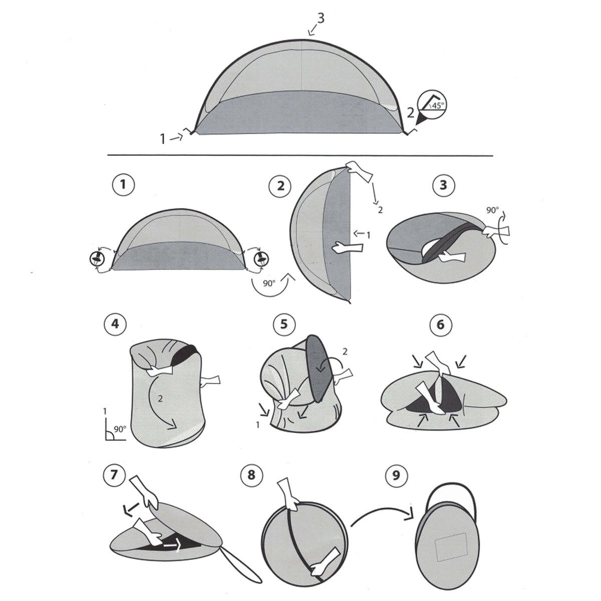 Namioty plażowe POP-UP to popularne akcesoria, które warto zabrać ze sobą na wyjazd nad wodę bądź piknik. Nasze namioty zostały wykonane z materiału zawierającego filtr UV, dzięki czemu można uchronić się w nich przed mocnymi promieniami słonecznymi. Złożony namiot zajmuje niewiele miejsca, jest więc bardzo wygodny do przechowywania i przenoszenia. Wystarczy umieścić go w okrągłym etui o średnicy 85 cm. Po wyciągnięciu namiotu z torby w krótkim czasie akcesorium jest gotowe do użycia. Nowoczesna technologia samorozkładania pozwala na przygotowanie miejsca wypoczynku dosłownie w kilka sekund. Podłoże namiotu powstało z materiału nieprzepuszczającego wilgoci z podłoża. Całość wykonana została z bardzo dobrych jakościowo materiałów, dzięki czemu namiot będzie służył przez długi czas.