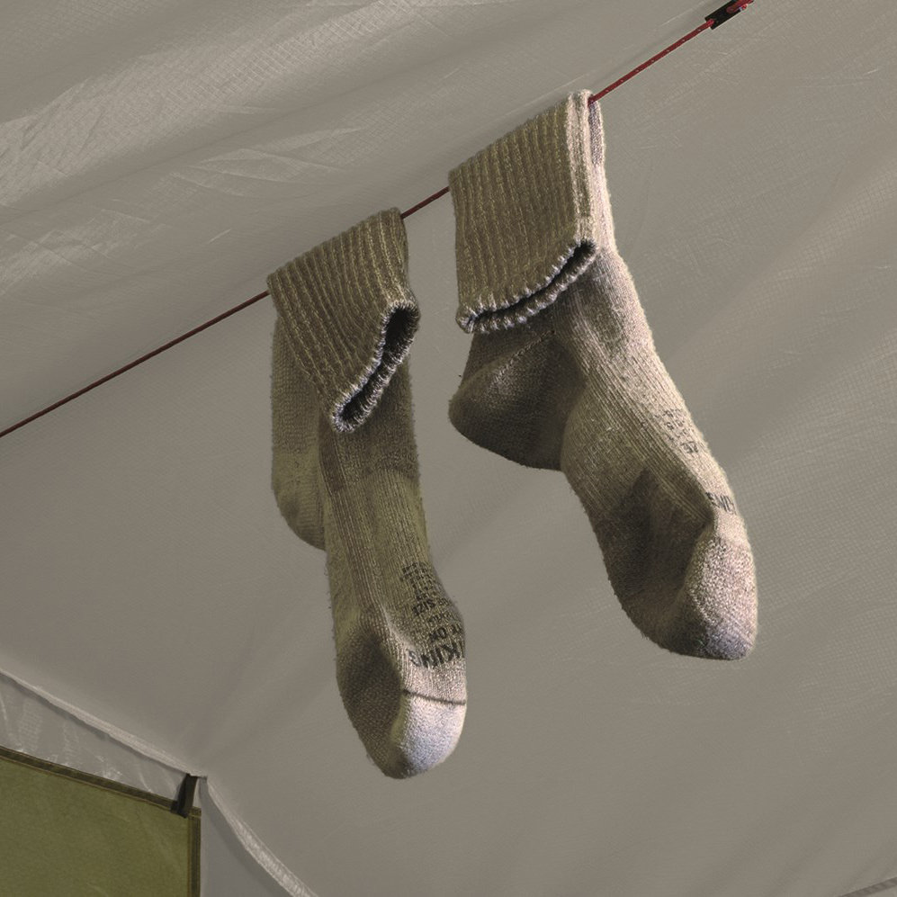 - Odciągi z klamrą pozwalającą na odpowiednią regulację siły napięcia i szybsze rozbicie namiotu;