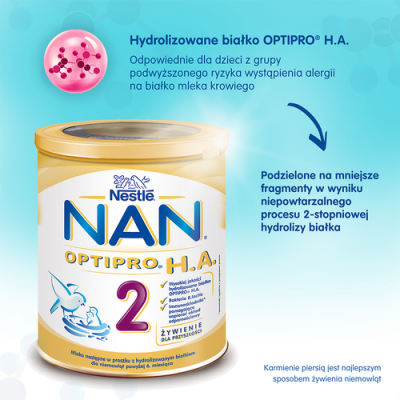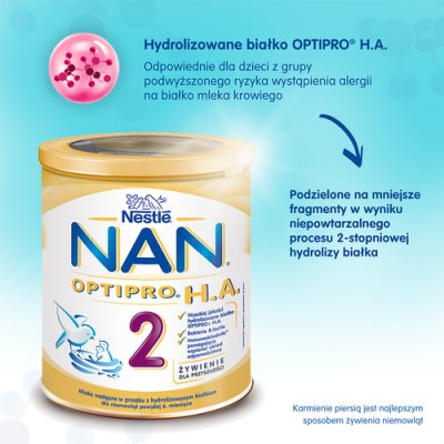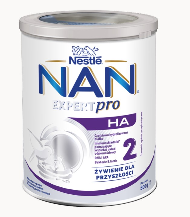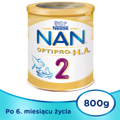 Nestle, Nan Expert Pro HA 2, Mleko następne dla niemowląt po 6 miesiącu, 800 g Mleko następne w proszku z hydrolizowanym białkiem dla niemowląt powyżej 6. miesiąca. Skład Laktoza (z ...