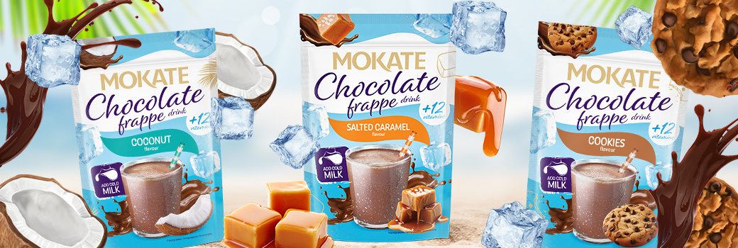 Napój Czekoladowy Ice Frappe Mrożona Czekoladowa i Słony Karmel Mokate 104g✅Napój czekoladowy Ice Frappe o smaku czekoladowo-karmelowym to prawdziwa uczta dla miłośników orzeźwień z nutą ...