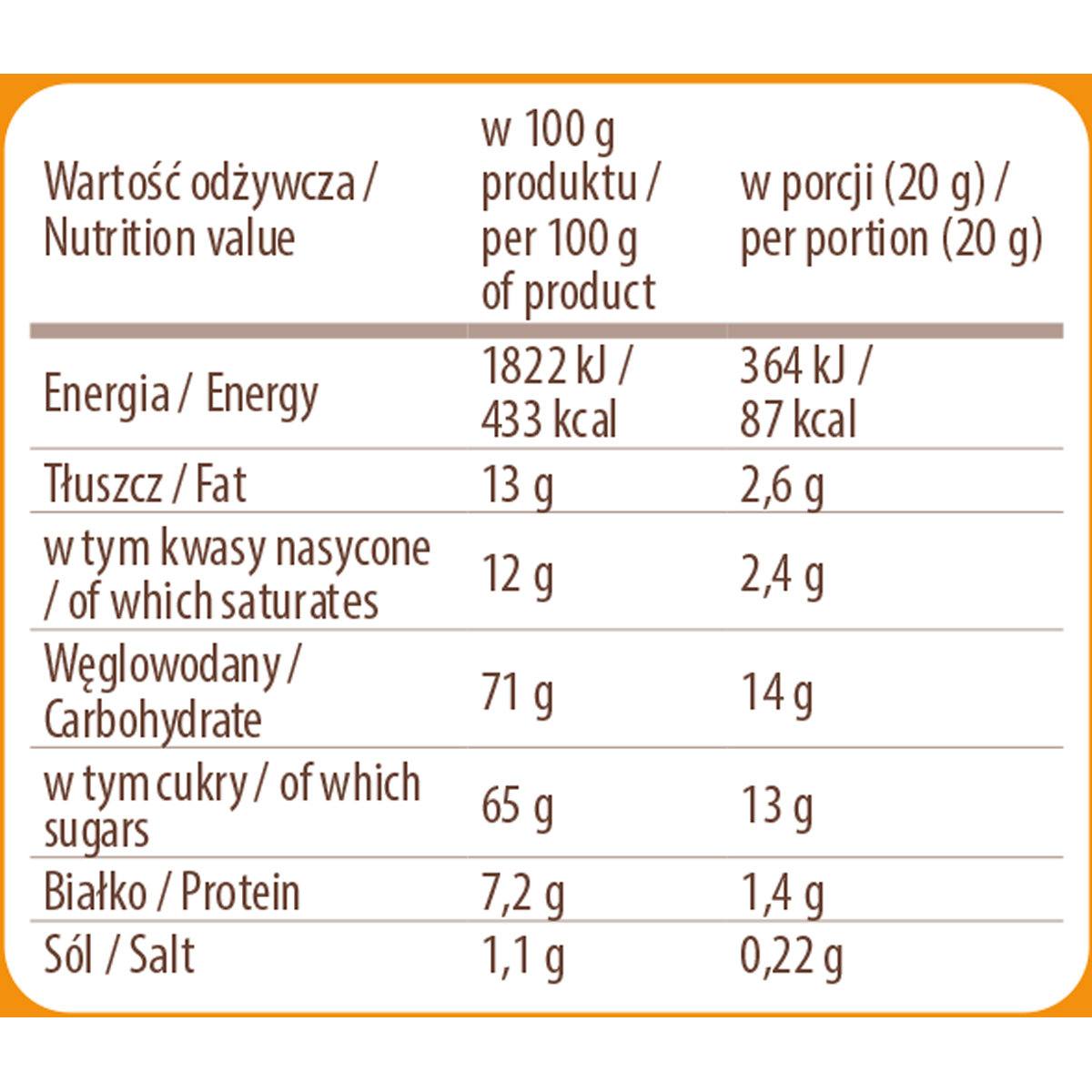 dynia liofilizowana (0,2 %), goździk mielony (0,1 %).