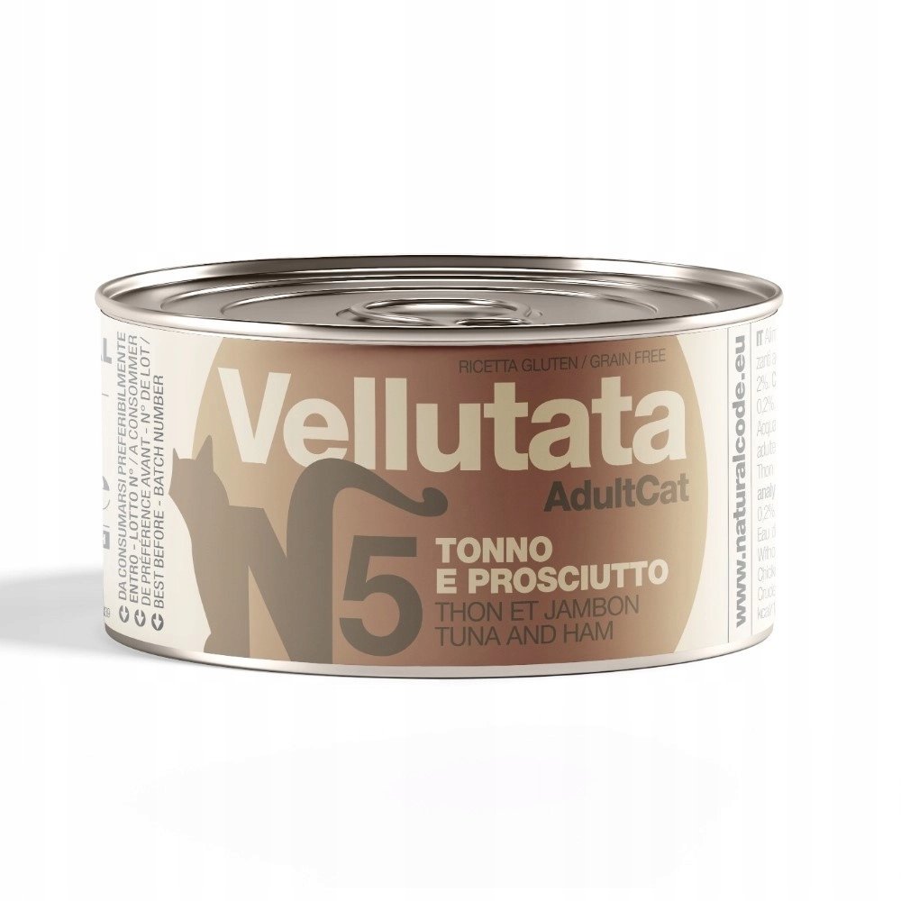 Vellutata V05 Tuna and Ham to formuła oparta na mięsie tuńczyka z dodatkiem szynki z kurczaka.
