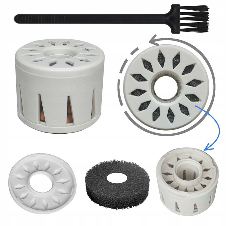 ►Filtr który został dołączony do oferowanego przez nas nawilżacza nie wymaga wymiany. Filtr jest dwustopniowy, pierwszy to filtr gąbkowy a drugi to filtr ceramiczny. Gdy filtr się zabrudzi wystarczy go rozebrać przekręcając w lewo górną pokrywę filtra. Filtr gąbkowy należy wymyć detergentem typu płyn do mycia naczyń. Filtr ceramiczny wystarczy usunąć z niego nalot z kamienia przy pomocy kwasku cytrynowego tak jak to się robi w przypadku czajników do gotowania wody.
