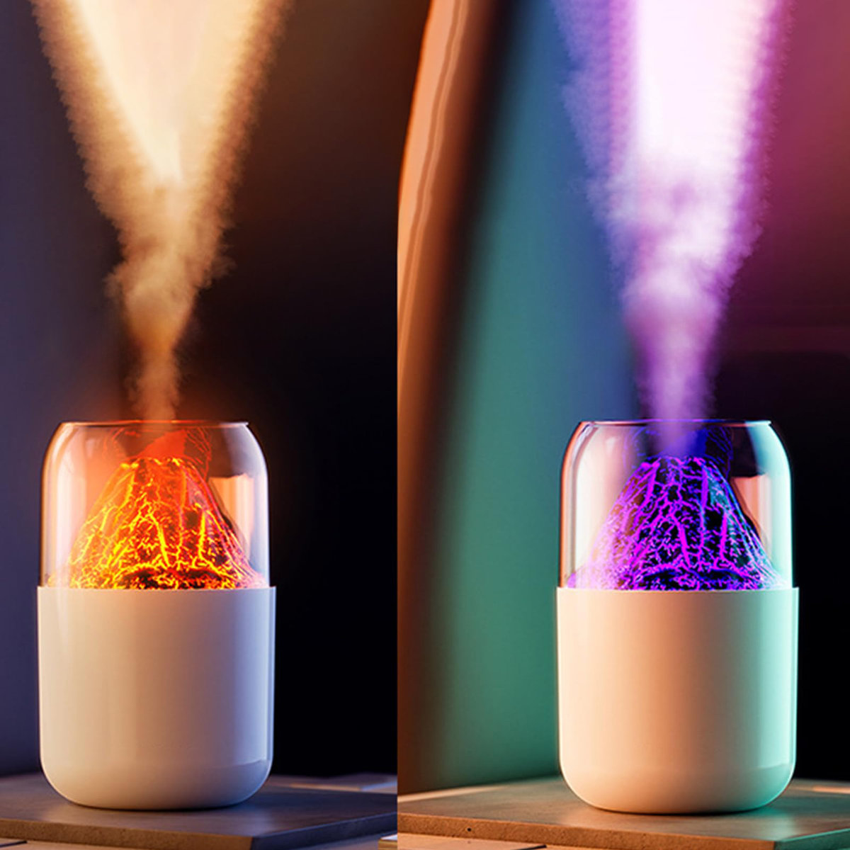 Wielofunkcyjne oświetlenie LED: Efekt "wulkanu" to nie tylko wizualna atrakcja – urządzenie wyposażone jest w oświetlenie LED, które można dostosować w zależności od nastroju.