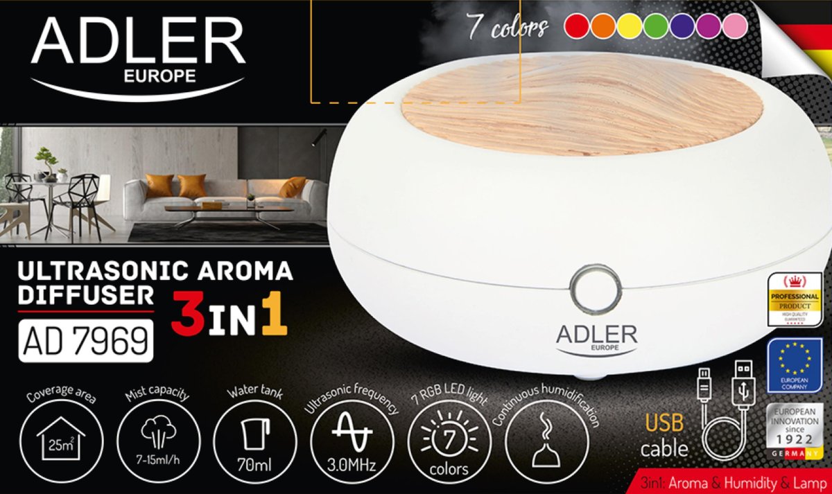 | Nazwa: | Adler AD 7969 Ultradźwiękowy dyfuzor zapachowy USB 3w1 |
