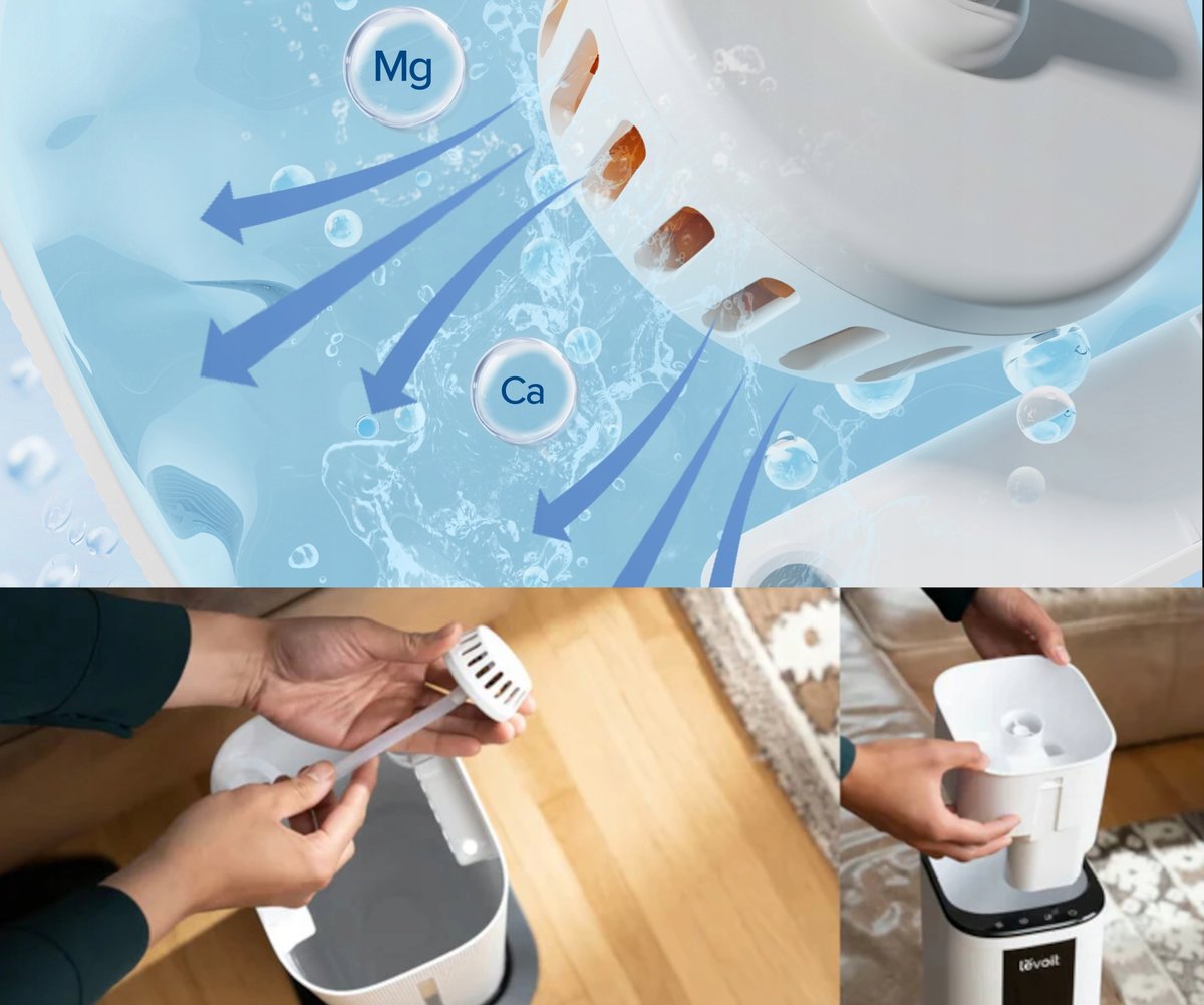Dodatkowy filtr demineralizacyjny zmiękcza wodę, ograniczając gromadzenie się kamienia i zanieczyszczeń. Dzięki temu nawilżacz działa wydajnie i bezawaryjnie przez długi czas, a Ty możesz cieszyć się świeżym, rześkim powietrzem bez obaw o bakterie i pleśnie.