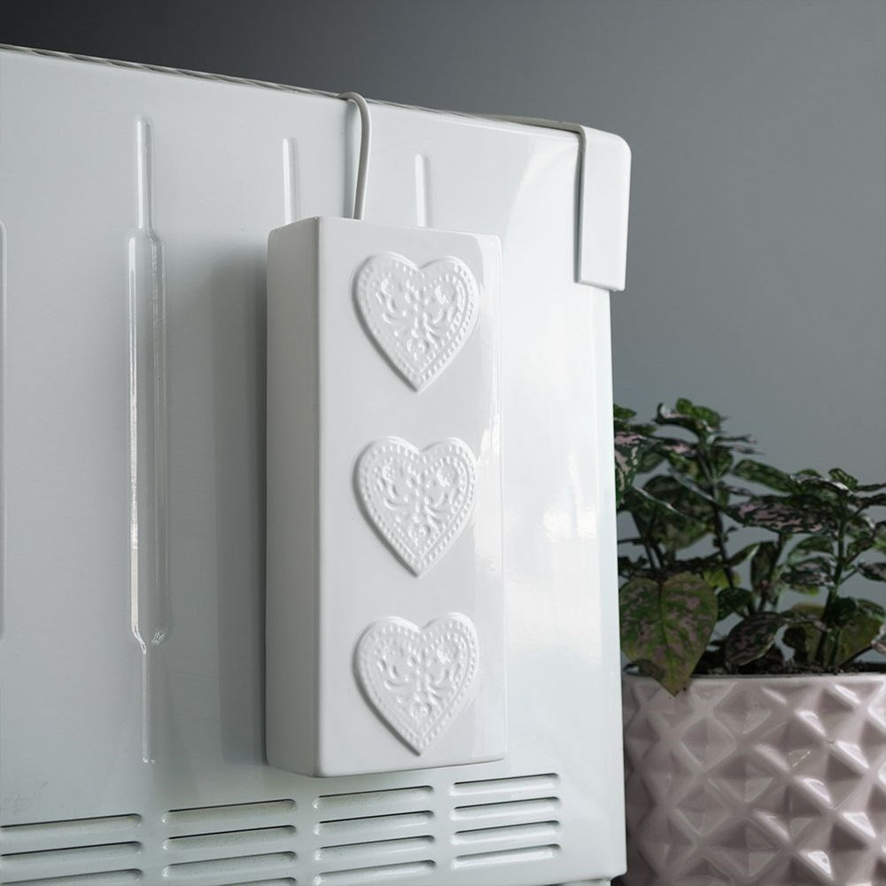 Nawilżacz powietrza montowany na kaloryferze za pomocą haczyka. Z jego pomocą w okresie grzewczym można zachować odpowiedni poziom nawilżenia pokoju. Dzięki ciekawemu wzornictwu nie tylko nawilży pomieszczenie, ale również dopasuje się do każdego wnętrza. Nawilżacz powietrza sprawdzi się w kuchni, salonie, sypialni, ale również w pokoju dziecięcym.