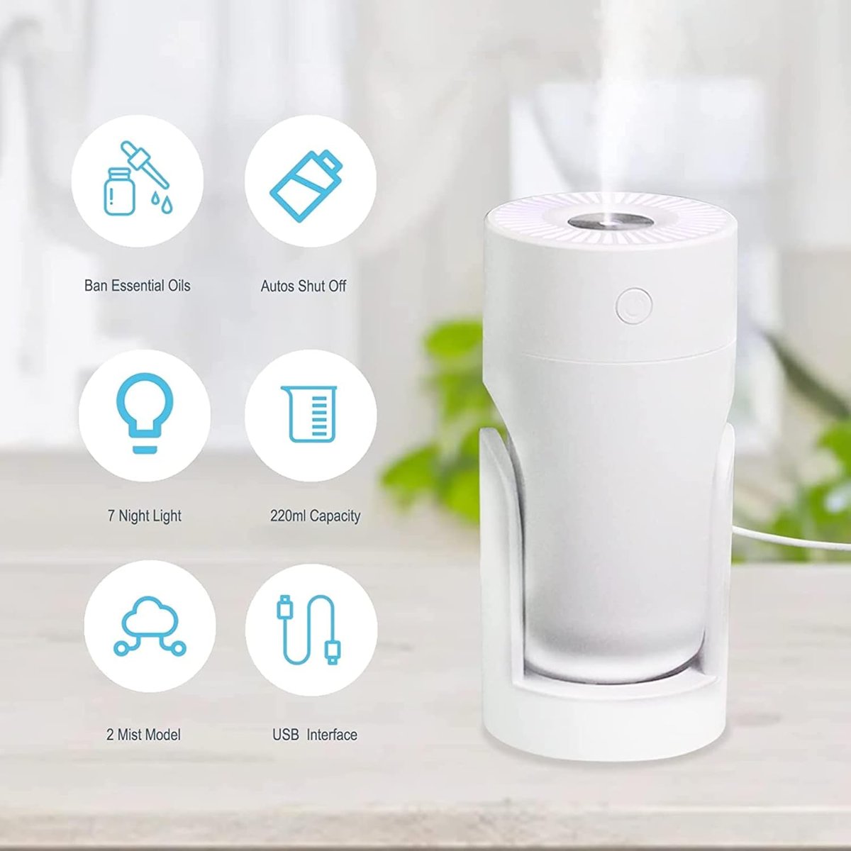 KREATYWNY NAWILŻACZ POWIETRZA Z AROMATERAPIĄ: Dwa tryby natrysku i automatyczne wyłączanie. Ten osobisty nawilżacz powietrza ma dwa tryby natrysku: ciągły i przerywany. Podczas pierwszego użycia namocz bawełniany knot przez 2-3 minuty i dodaj ulubiony zapach olejku eterycznego, aby wzmocnić romantyczną atmosferę.