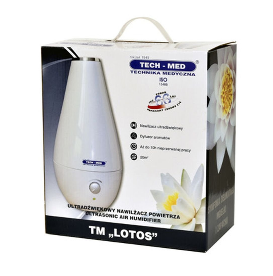 Odpowiednio dobrany nawilżacz utrzyma prawidłową wilgotność w pomieszczeniu. Jest to szczególnie ważne w sezonie grzewczym. Powietrze staje się wtedy suche. Sprzyja to rozwojowi infekcji oraz zaostrza alergie. Nawilżacz może więc zapobiec chorobom oraz polepszyć samopoczucie.TECH-MED TM Lotos ma wydajność na poziomie 200 m³/h i skutecznie oczyści pomieszczenie o powierzchni 20 m2.