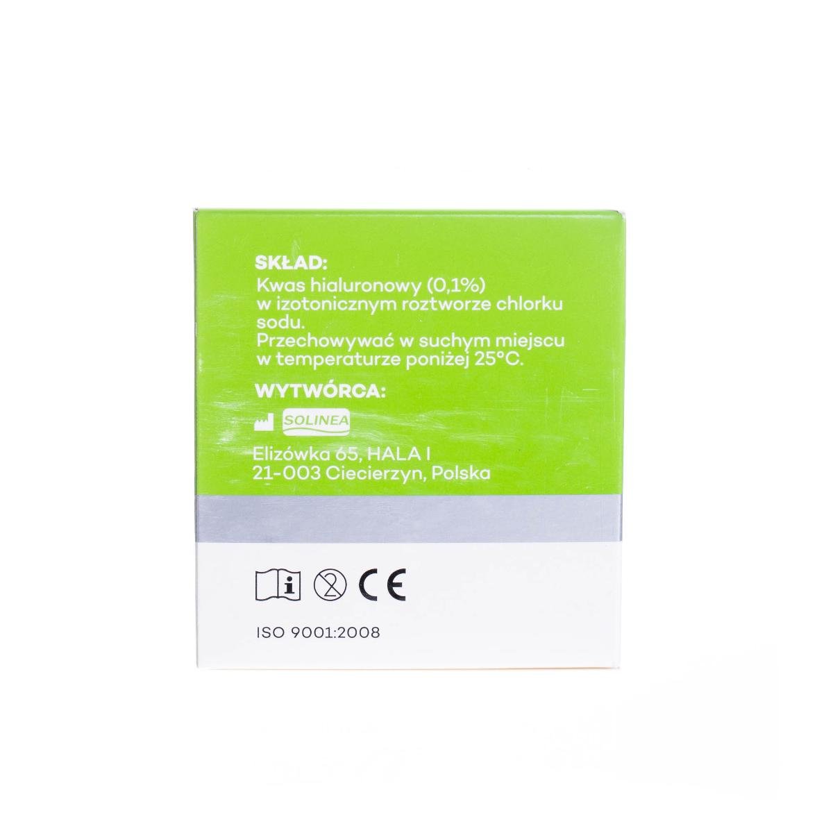 Jałowy roztwór chlorku sodu 0,9%, hialuronian sodu.