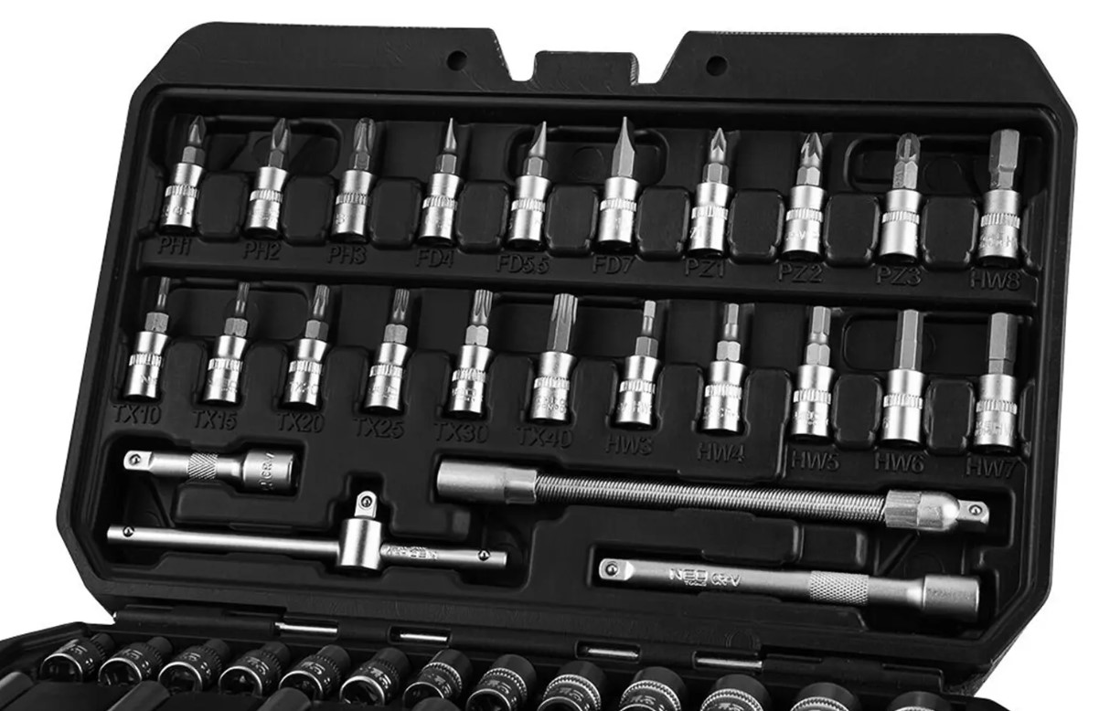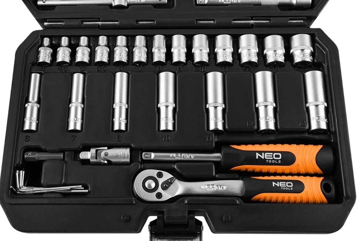 Właśnie zrecenzowałem NEO TOOLS, Zestaw kluczy nasadowych 1/4", 55 szt., satynowy, 10-201