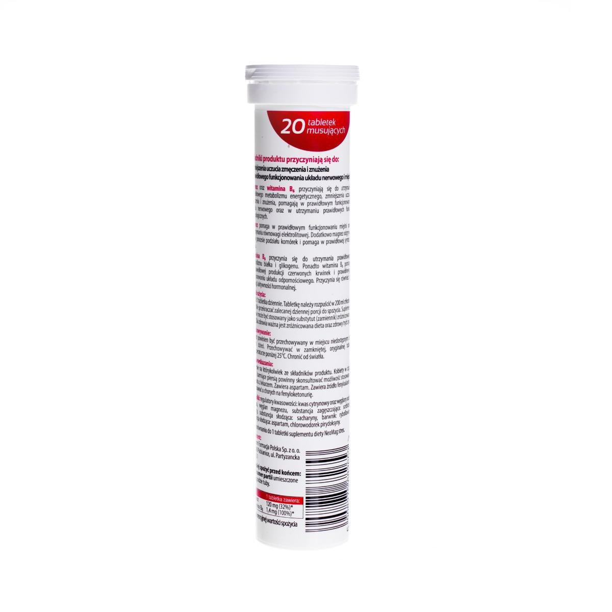 Suplement diety, Aflofarm, Neomag Forte Magnez + B6, 20 tabletek musującychNeoMag forte mus to suplement diety uzupełniający codzienną dietę w magnez i witaminę B6 w postaci tabletek musujących. ...
