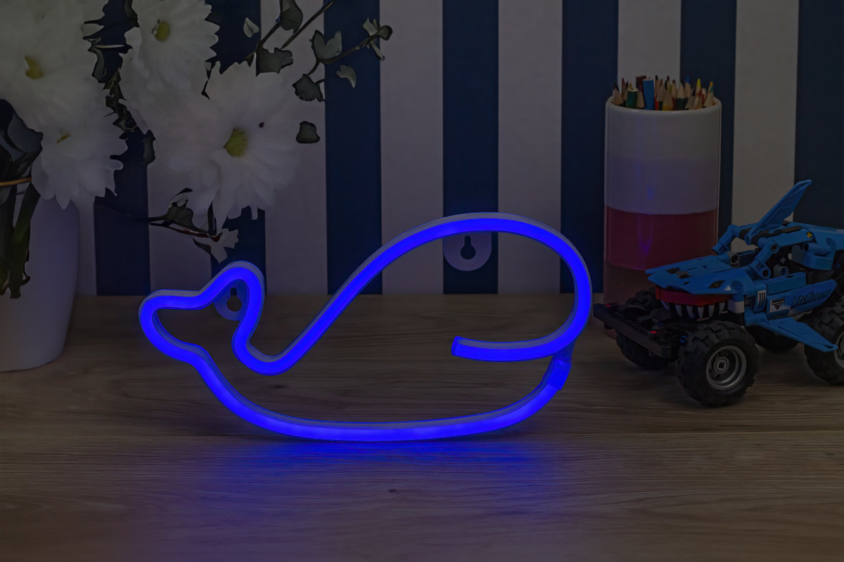 Lampa LED w formie neonu o kształcie wieloryba to wyjątkowa ozdoba, która przypadnie do gustu fanom tych wodnych ssaków i nowoczesnego wystroju wnętrz