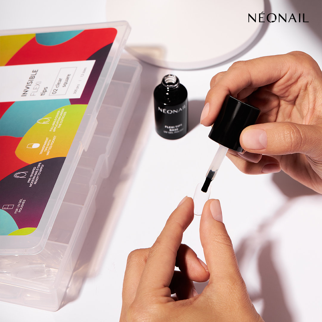 Baza Hybrydowa NEONAIL FLEXI TIPS BASE Flexi Tips Base to baza hybrydowa, dzięki której wykonasz przedłużenie paznokci z elastycznymi tipsami Invisible Flexi Tips już w 20 minut. Łączy tipsy z płytką paznokcia, zapewniając efekt trwały aż do 21 dni. Do tego jest łatwa w użyciu dzięki swojej średniej gęstości i krótkiemu pędzelkowi. Stworzysz z nią szybką stylizację, która będzie naprawdę WOW! Baza działa jak klej do tipsów. To must have przy stosowaniu elastycznych tipsów! Wejdź na nowy poziom stylizacji! Poznaj nowość od NEONAIL i sprawdź, jakie ma zalety: