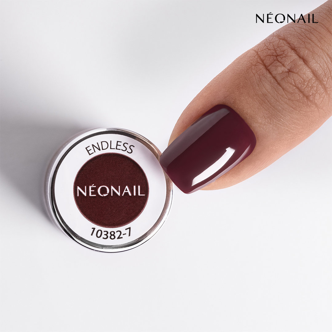 Lakier Hybrydowy NEONAIL SIMPLE 3w1 ENDLESS Pozwól sobie na relaks i drobne przyjemności, tworząc przy tym trwałą do 14 dni stylizację paznokci. Z lakierem do paznokci 3w1 będzie to niezwykle szybkie i łatwe. Sięgnij po bordowy odcień ENDLESS, który jest szykowny oraz kobiecy. Nałóż go na paznokcie, utwardź każdą z warstw w lampie LED i gotowe! Nie potrzebujesz bazy, topu ani przemywania stylizacji Cleanerem, by przygotować połyskującą oraz trwałą stylizację z kobiecym charakterem.