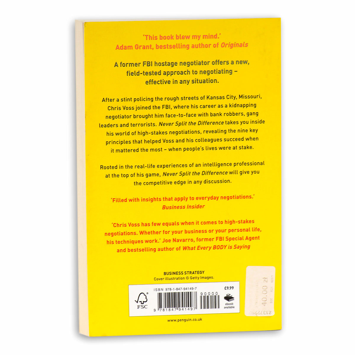 After a stint policing the rough streets of Kansas City, Missouri, Chris Voss joined the FBI, where his career as a kidnapping negotiator brought him face-to-face with bank robbers, gang leaders and terrorists. Never Split the Difference takes you inside his world of high-stakes negotiations, revealing the nine key principles that helped Voss and his colleagues succeed when it mattered the most – when people’s lives were at stake.