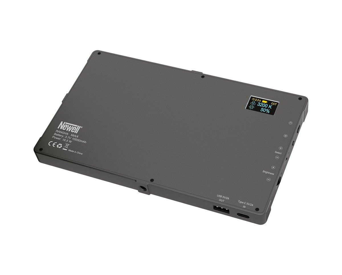 Lampę LED Newell RGB-W Rangha Max wyposażono w przeszło 2 razy bardziej pojemny akumulator, w porównaniu do starszej siostry. 10000 mAh pozwoli korzystać z przenośnego źródła światła do 3 godzin na jednym ładowaniu! Na obudowie urządzenia, oprócz portu USB-C pozwalającego uzupełniać moc lampy, umieszczono także gniazdo USB. Dzięki niemu zamienisz lampę w powerbank i z łatwością naładujesz swój smartfon, słuchawki lub inne akcesoria towarzyszące Ci na planie zdjęciowym lub fotograficznym.