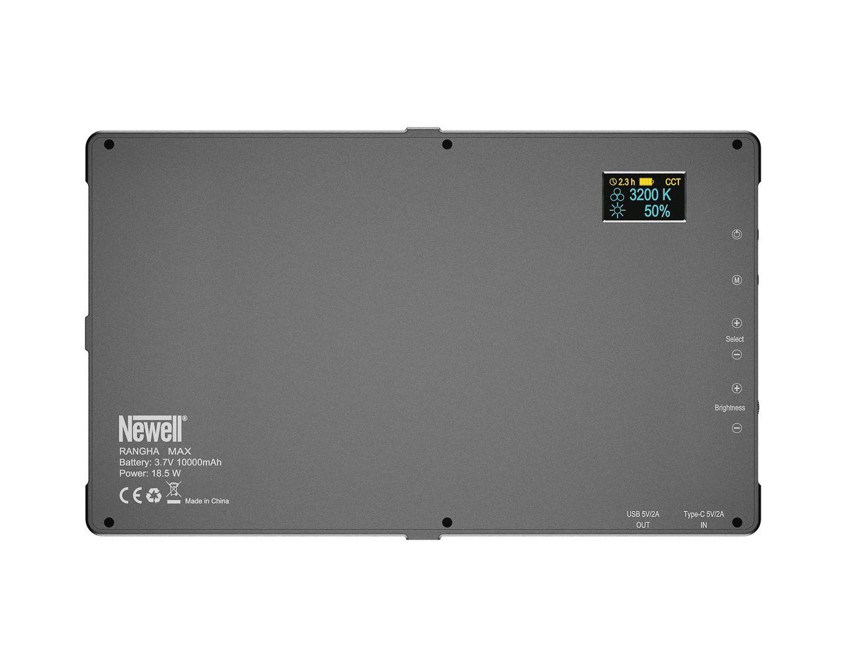 Lampa LED Newell RGB-W Rangha Max swoimi wymiarami przypomina niewielki tablet lub kieszonkowy kalendarz. Lekkość urządzenia i małe wymiary pozwolą zmieścić ją w niemal każdej torbie fotograficznej. Obudowa wykonana z lotniczego aluminium zapewni optymalną ochronę w każdych warunkach. Urządzenie oferuje też trzy gwinty ¼ cala. Dzięki nim z łatwością zainstalujesz lampę na statywie, klatce lub rigu, a także połączysz ją z dodatkowymi akcesoriami, takimi jak mikrofony, rejestratory dźwięku lub ekrany podglądowe.